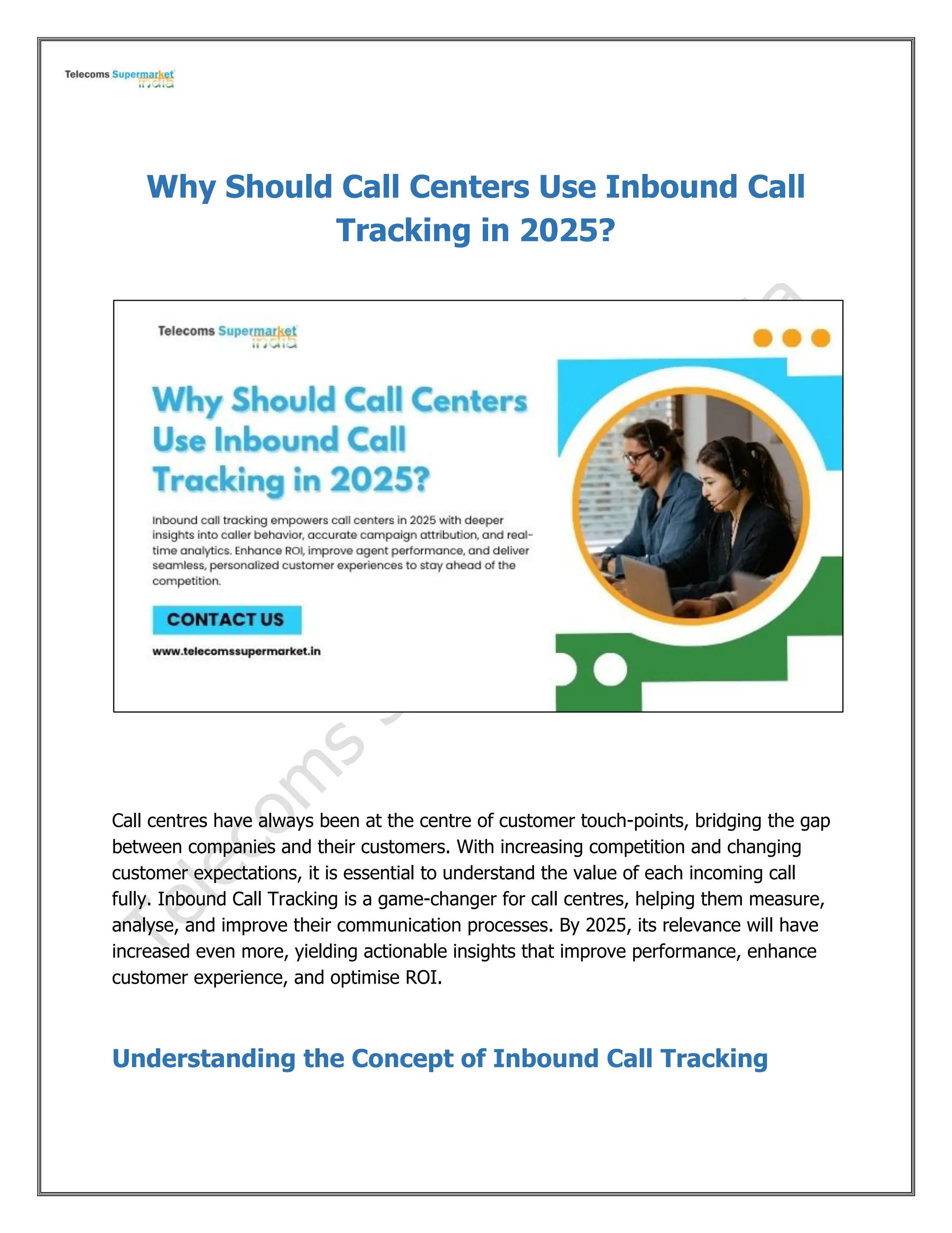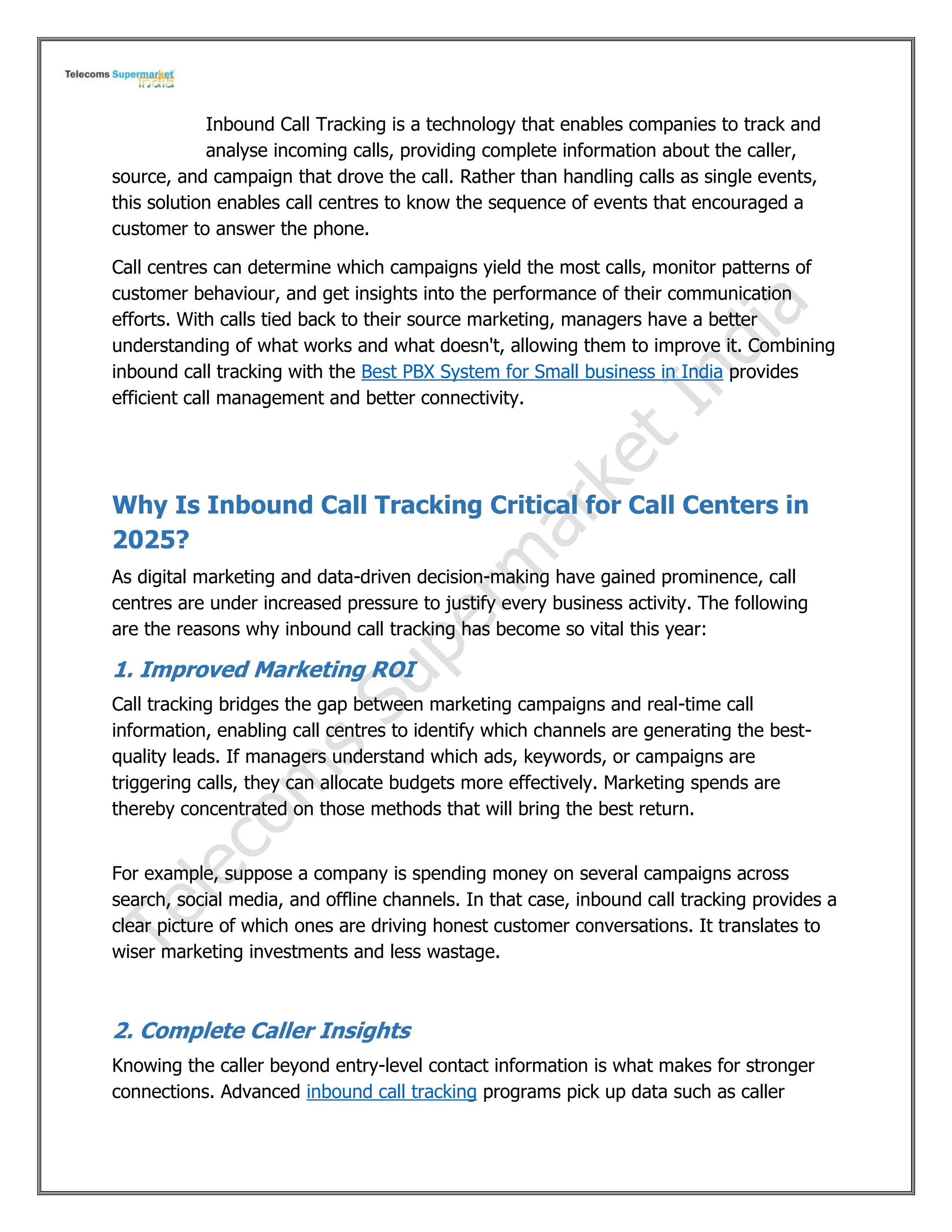 Are you wondering why inbound call tracking is important for call centers in 2025? This PDF explains how tracking improves customer service, improves agent performance, and increases marketing ROI. Stay ahead with better communication insights. Read this PDF to learn the key reasons why call centers should adopt inbound call tracking now.