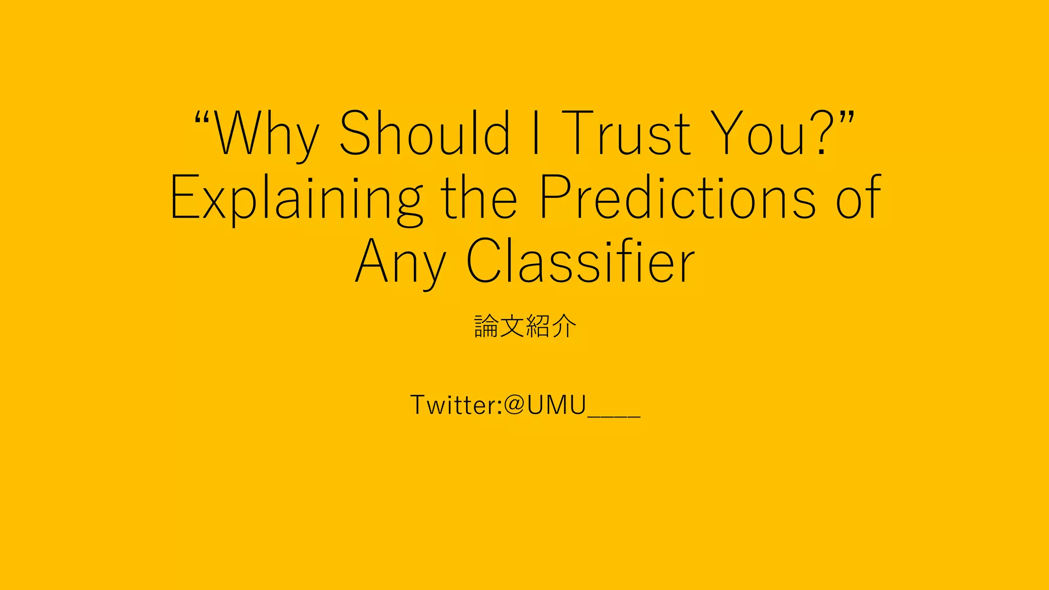 “Why Should I Trust You?” Explaining the Predictions of Any Classifier (Ribeiro et al., 2016)の紹介。
