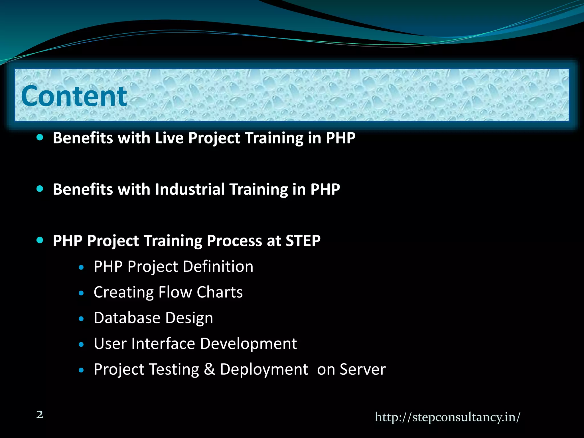 This document discusses the benefits of PHP live project training at STEP Consultancy. The training process involves students working closely with PHP developers on real-world client projects. Students learn skills like project definition, flow chart creation, database design, user interface development, testing, and deployment. Some key benefits are opportunities to boost employability, learn from experienced developers, and get placement assistance. The training aims to prepare students for PHP jobs through hands-on experience with industry-standard processes and tools.