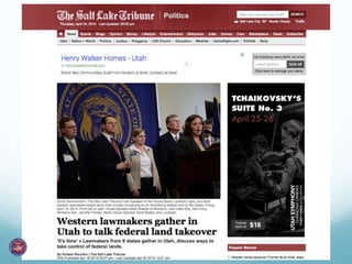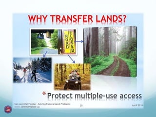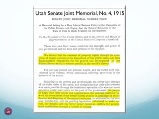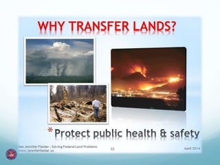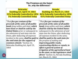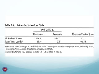 The document discusses the historical relationship between the federal government and public land ownership in the United States, emphasizing the constitutional basis for federal authority over territory and property rights. It highlights the varying degrees of public land ownership among states and examines the intent behind land cession and regulations, including the rights and sovereignty of states. Notably, it contrasts the land ownership situations of Hawaii and Alaska, illustrating discrepancies in federal control and state rights at the time of their admission to the Union.