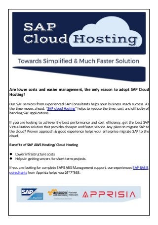 SAP BASIS Consultants from Apprisia can help you migrate SAP to cloud. We help you in getting quality SAP Cloud hosting services. Discuss your requirements with us at www.runsapbasis.com.