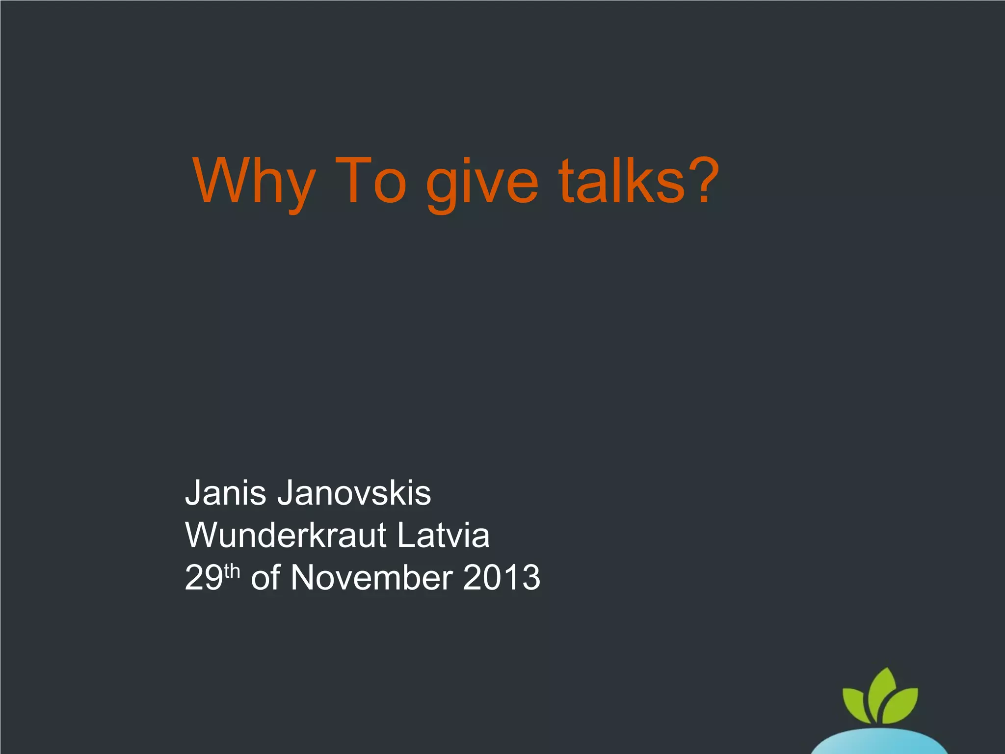 Janis Janovskis discusses the reasons for giving talks, emphasizing that anyone can be a presenter regardless of perceived limitations. He encourages thinking outside the box and recognizing the value of unique voices and perspectives. The document suggests taking advantage of available resources and opportunities to practice and improve presentation skills.