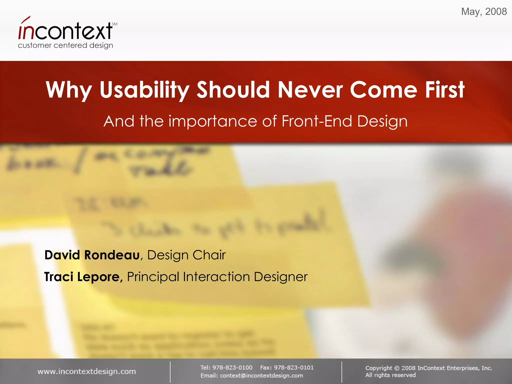 The document discusses the significance of user-centered design (UCD) and its differentiation from usability and user experience (UX). It emphasizes that while usability focuses on ease of use, value and user intent should drive design, advocating for generative front-end design supported by contextual customer data. The authors stress that a clear understanding of user needs and iterative design processes ultimately lead to better business outcomes and enhanced user satisfaction.