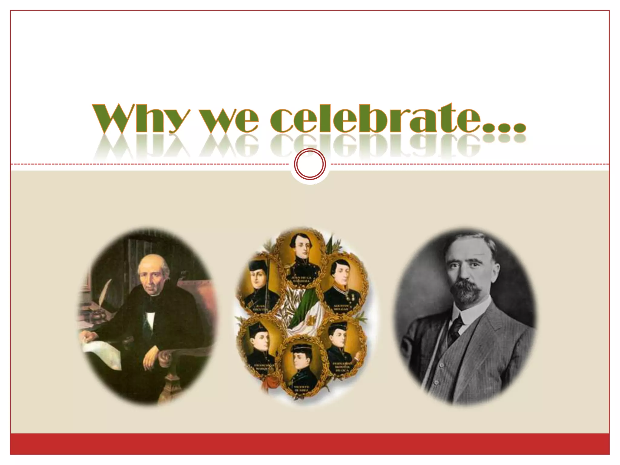 September 13 marks the Battle of Chapultepec in which a young group of Mexican military cadets between ages 14-18 fought bravely against an invading American army attacking the Castillo de Chapultepec military school. Six cadets are especially remembered for their heroism including one who is said to have wrapped himself in the Mexican flag before jumping to his death. September 16 marks Mexico's independence from Spain after priest Miguel Hidalgo rang the church bells on September 15, 1821 declaring independence, though it took another 11 years to be achieved. November 20 marks the start of the Mexican Revolution against dictator Porfirio Diaz who had ruled for 30 years, led by revolutionary figures like Francisco Madero, Emiliano