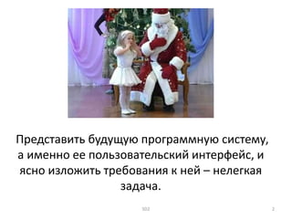 Документ обсуждает использование прототипов как средства снижения риска неудач в проектировании программных систем, особенно в контексте разработки пользовательского интерфейса. Он предоставляет рекомендации по созданию эффективных прототипов, призывая сосредоточиться на функциональности, а не на дизайне, а также предлагает правила оформления и управления элементами прототипа. Важным аспектом является то, что прототипы должны быть интерактивными и понятными для клиентов, чтобы обеспечить успешную реализацию требований.