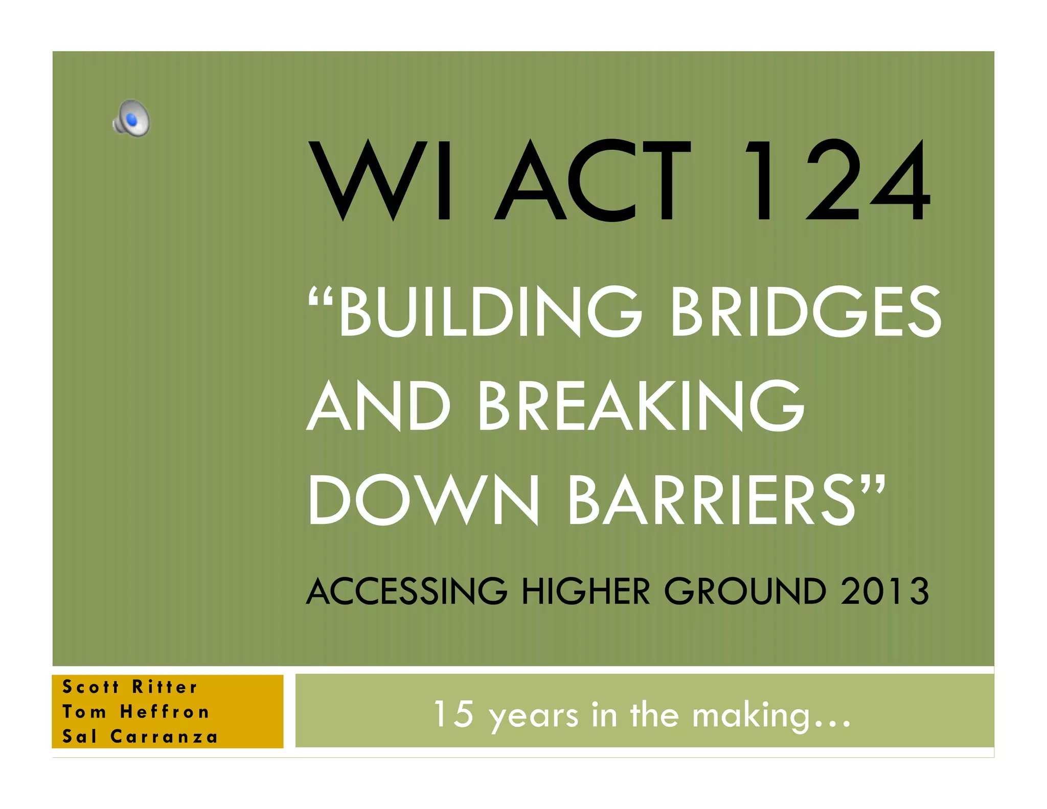 The document summarizes the history and provisions of Wisconsin Act 124, which ensures equal access to textbooks and educational materials for postsecondary students with disabilities in Wisconsin. Some key points: