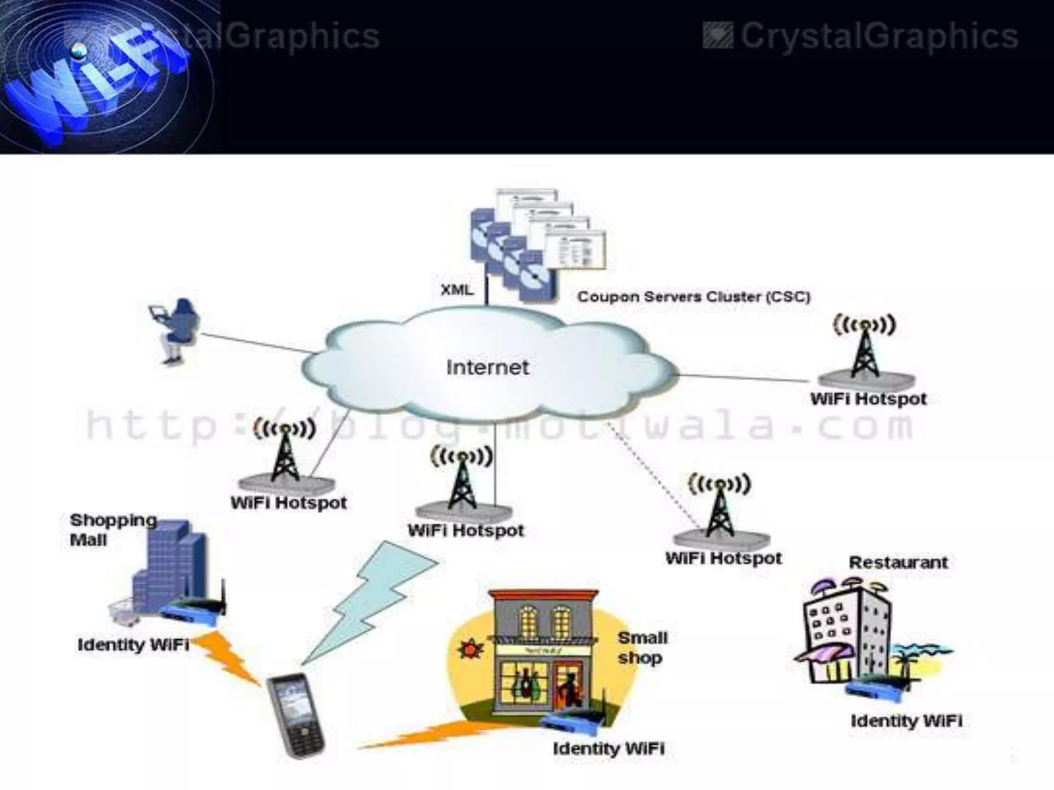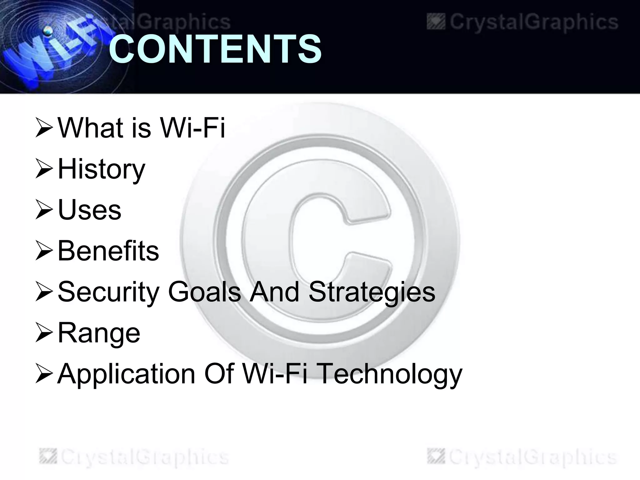 This document discusses Wi-Fi and its applications. It defines Wi-Fi as a wireless technology brand owned by the Wi-Fi Alliance that uses IEEE 802.11 standards for interoperable wireless local area network (WLAN) products. The document outlines the history of Wi-Fi, its common uses like sharing files and streaming media, benefits such as mobility and reduced costs, security goals, typical ranges, and applications like enabling collaboration and providing internet access in public spaces.