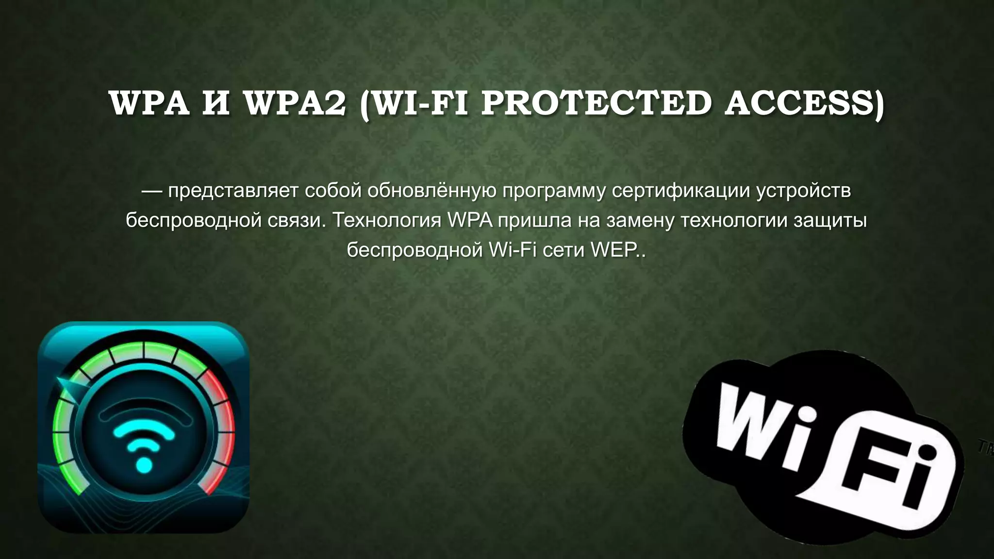 Документ описывает технологию защиты беспроводных сетей Wi-Fi, известную как WPA и WPA2, которая заменяет устаревший стандарт WEP. Указывается на усовершенствования в шифровании и аутентификации, а также на уязвимости, выявленные в WPA и WPA2, которые позволяют злоумышленникам расшифровывать данные. В заключении подчеркиваются преимущества WPA, такие как усиленная безопасность и совместимость с разными устройствами.