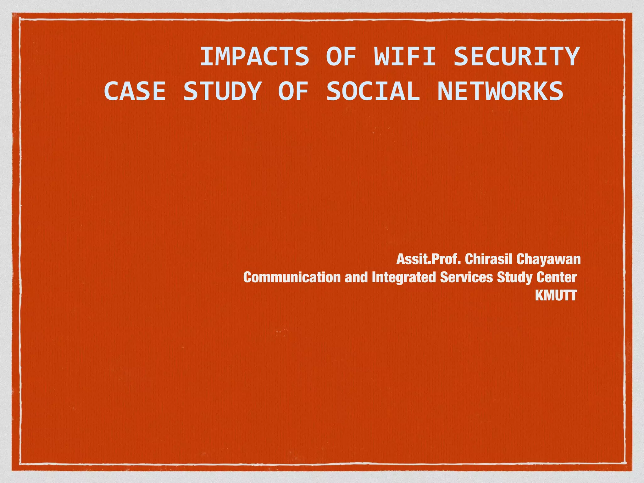 This document discusses wireless network security and social networks. It begins by describing different types of wireless networks like personal area networks and wireless local area networks. It then notes that the weakest point of wireless networks is their vulnerability since the information is transmitted over unprotected airwaves and mobile devices can be lost or stolen. The document outlines some basic security concepts for wireless communication like privacy, authentication, integrity, availability and access control. It provides examples of security threats on social networks and public WiFi networks. It concludes by emphasizing the integration of different wireless approaches and the need for security concepts like privacy and authentication on wireless networks.