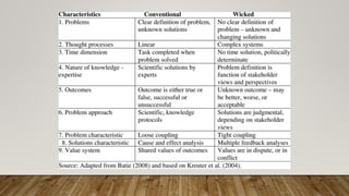 Design Thinking is a methodology used to address "wicked problems", which are highly complex problems with many unknowns and no clear solutions. Wicked problems have no definitive formulation or stopping rules for solutions, which can only be good or bad rather than true or false. Every aspect of a wicked problem is a symptom of a higher-level problem, and solving one has no room for trial and error due to their unique nature.