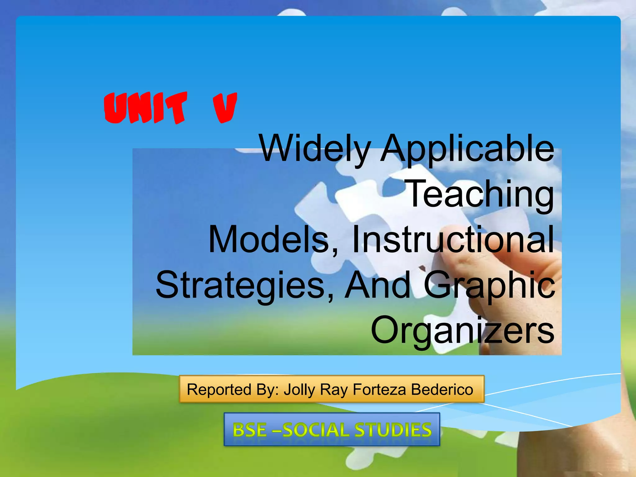 This document discusses various teaching models, instructional strategies, and graphic organizers that can be used in the classroom. It describes several widely applicable teaching models including discovery learning, inquiry learning, problem-based learning, cooperative learning, decision-making, and the ACES teaching approach. Each model follows a specific "syntax" or sequence of instruction. The document also outlines different instructional strategies such as lecture, roundtable discussion, panel discussion, brainstorming, role playing, and socio-drama. Finally, it presents various graphic organizers like concept maps, concept clusters, wheel maps, cycle graphs, and Venn diagrams that can help students organize and understand information.