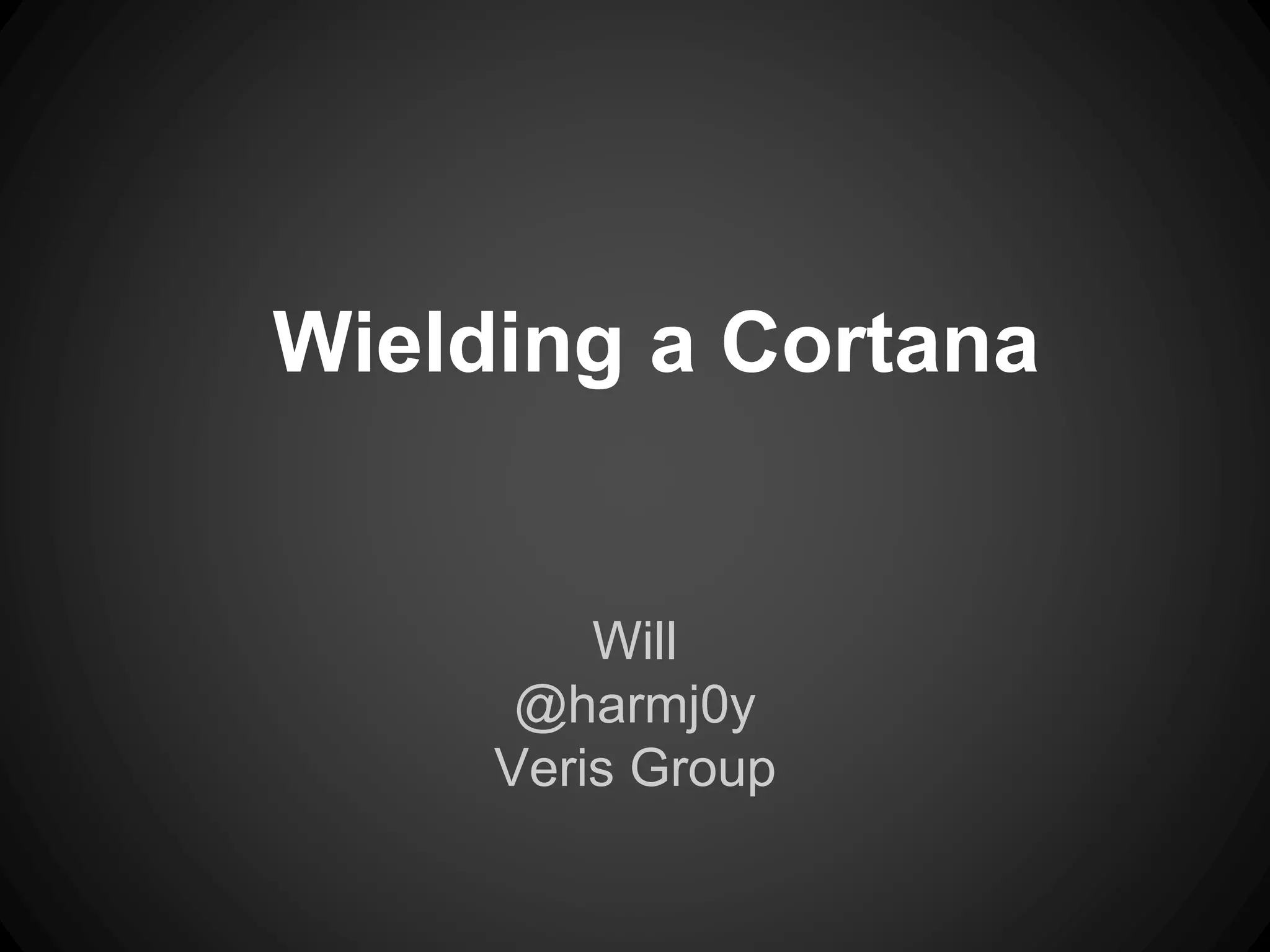 The document outlines the functionalities and use cases of Cortana, an extension for automating tasks in Armitage and Metasploit, which is beneficial for penetration testing. It presents several scripts and modules, such as grabcreds.cna, safetynet.cna, and user_hunter.cna, that automate various tasks related to credential gathering, session management, and user enumeration. The document emphasizes how Cortana can enhance efficiency in pentesting by minimizing repetitive tasks through scripting and user interface customization.