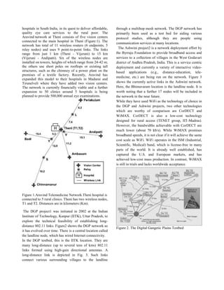 This document summarizes experiences using Wi-Fi for rural connectivity projects in India. It discusses three projects - the Aravind Telemedicine Network, Digital Gangetic Plains project, and Ashwini project. The key aspects of deploying long-distance Wi-Fi networks discussed are network planning and deployment, network protocols, network management and operations, power savings, and applications and services. Network planning is especially important for cost optimization given infrastructure costs for towers, and involves determining tower locations, heights, network topology, antenna types, transmit powers, and channels of operation.