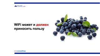 Документ описывает, как Wi-Fi технологии могут быть использованы как маркетинговый инструмент для привлечения клиентов. Гостям предлагается подключиться к сети через социальные сети, что позволяет компаниям собирать аналитику о посетителях и их предпочтениях. Это также подчеркивает важность доверия к рекомендациям и отзывам в продвижении товаров и услуг.