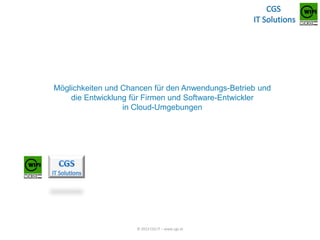 The document discusses the potential of cloud software and services for businesses and developers, outlining various usage scenarios such as application development, data analysis, and testing environments. It emphasizes the importance of scalability, security, and modular design in cloud development, while also highlighting the technologies and design principles necessary for effective implementation. Additionally, it offers consulting services and training courses to help organizations adopt and optimize cloud solutions.