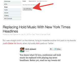The document discusses the role of a computational biologist at The New York Times and outlines how academia can benefit the company. It emphasizes the importance of practices, skills, and culture in data science, advocating for the reframing of questions as machine learning tasks and fostering communication and skepticism within teams. Additionally, it offers contact information for opportunities and interactions.