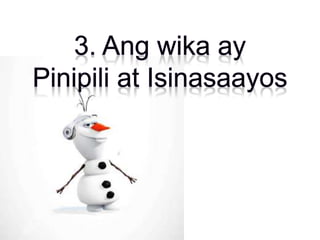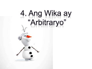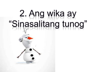 Ang wika ay isang masistemang balangkas ng komunikasyon na ginagamit ng mga tao sa pamamagitan ng mga simbolo. Ang komunikasyon ay may kinalaman sa kapangyarihan at katangian ng wika, na nakabatay sa kultura. Ang layunin ng wika ay mahalaga sa pag-unawa ng interaksyon ng tao.