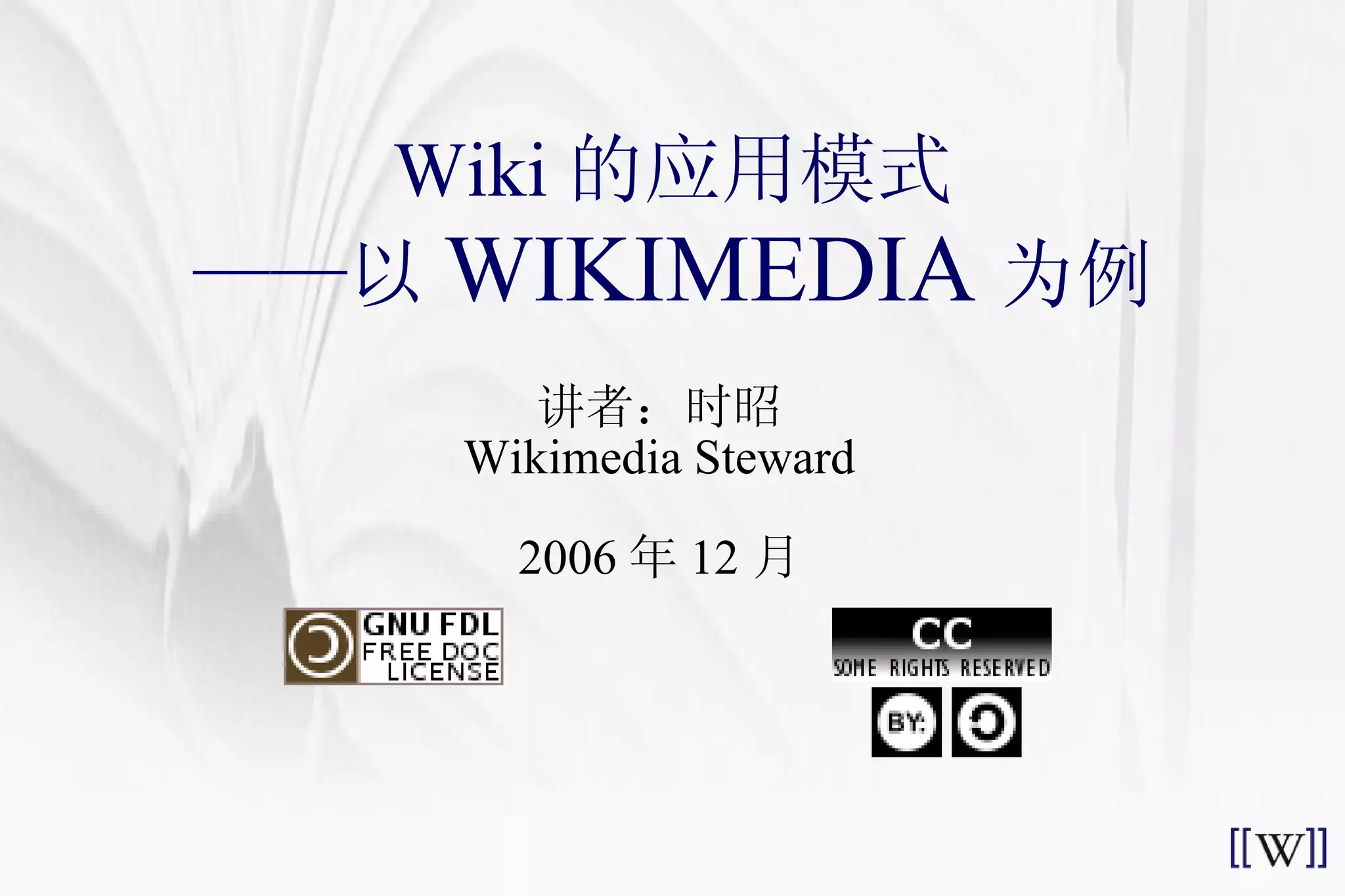 本文介绍了不同的 wiki 应用模式,以 Wikimedia 为例,涵盖了百科模式、开放存取和商业应用等多个方面。此外,文档中提到了一些专业领域的 wiki 以及用户平等和开放编辑的理念。最后,提供了有关新项目提案的链接。