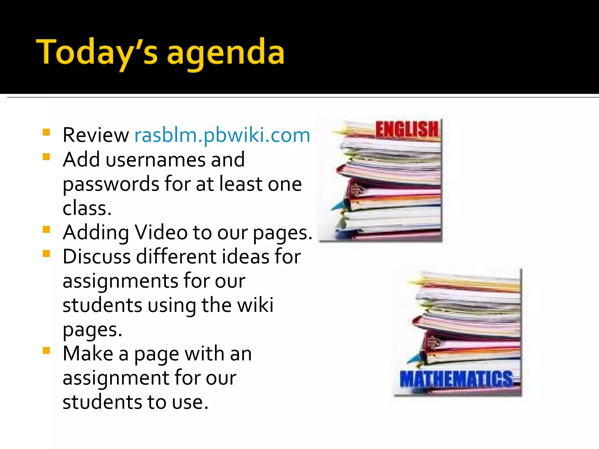 This document discusses using a wiki for professional development and student assignments. It suggests adding usernames and passwords for classes and discussing ideas for student assignments using wiki pages. Examples of assignments include having students write about political cartoons, research papers with linked sources, and creating science topic pages requiring research. The document also provides information on adding video, creating user accounts, and links ideas for developing a lesson to implement before the next meeting.