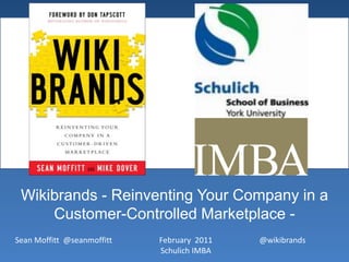 This document discusses the concept of "wikibrands" and how companies can reinvent themselves in today's customer-controlled marketplace. It outlines 10 factors for wikibrand success: 1) requiring a culture change, 2) having a clear focus, 3) using the right language, content and outreach, 4) providing incentives and motivations, 5) establishing rules and rituals, 6) choosing the right tools and platforms, 7) managing communities well, 8) adapting to the community's life stage, 9) using proper metrics and 10) facilitating organizational change. Companies are encouraged to engage with customers through social media to build advocacy, perception, support, serendipity, content, insight and ultimately success in business.