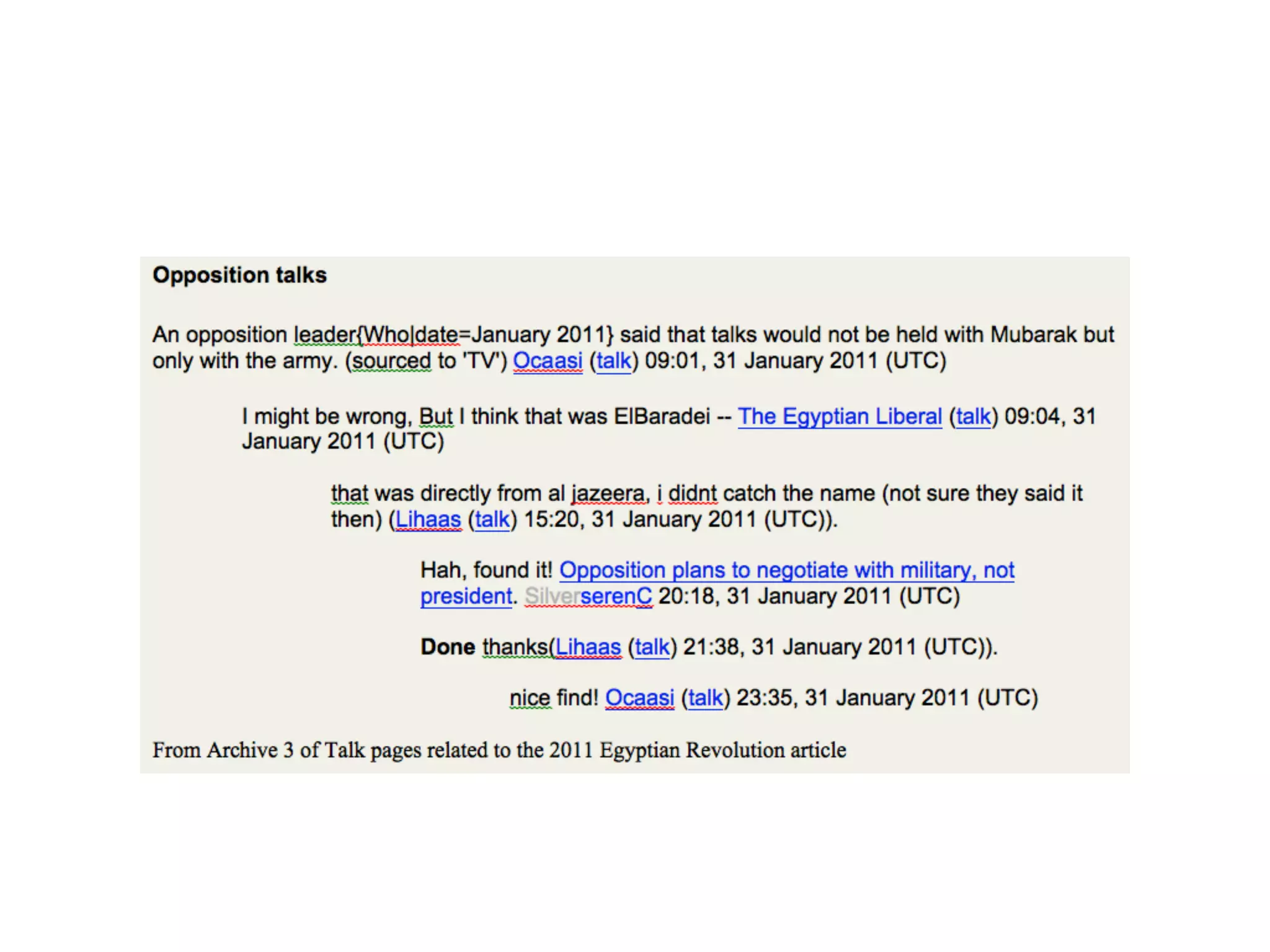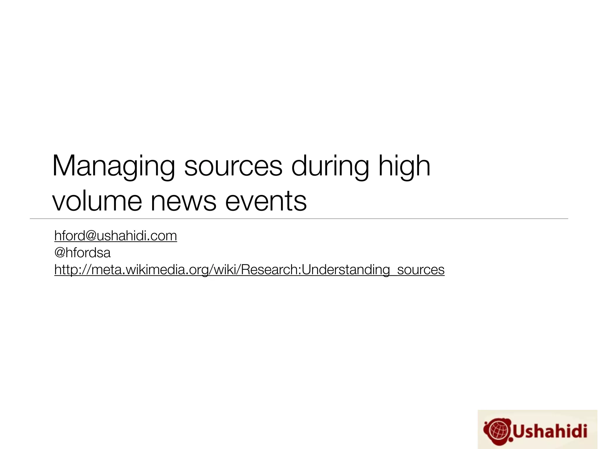 The document explores how Wikipedians manage social media sources during high-volume news events, highlighting verification challenges and strategies for better source management. It discusses the roles of various source types, emphasizes the importance of using both reliable and secondary sources, and provides examples from the 2011 Egyptian revolution. The research focuses on methods editors use to verify information and the importance of avoiding reliance on single sources.