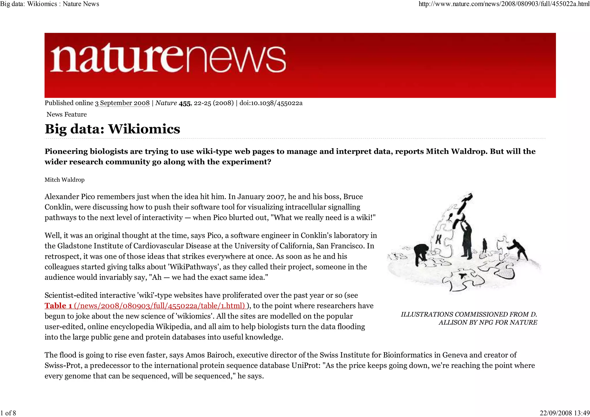 1) Scientist-edited wiki websites have become popular ways for biologists to manage and interpret the large amounts of genomic and other biological data being produced.