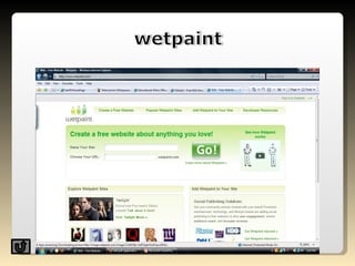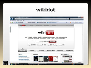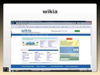 A wiki is a website that allows users to collaboratively create, edit, and organize content. Ward Cunningham created the first wiki in 1994, called the WikiWikiWeb, inspired by the fast shuttle buses in Hawaii. Wikis use a simple markup language and allow anyone to easily edit pages to contribute or change content.