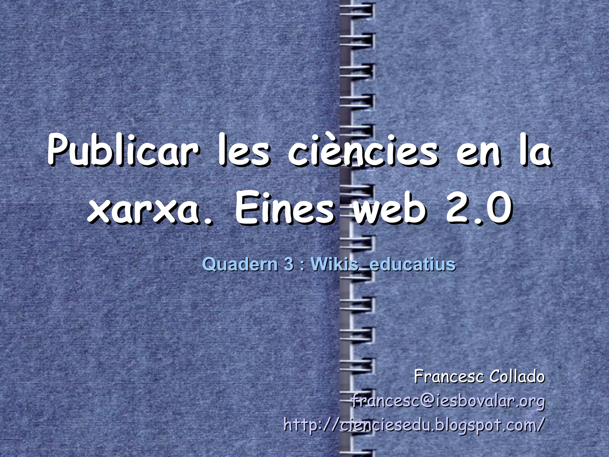 Publicar les ciènciesen la xarxa. Eines web 2.0 Francesc Collado [email_address] http://cienciesedu.blogspot.com/ Quadern 3 : Wikis educatius
