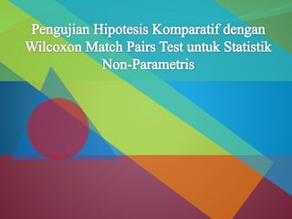 Dokumen ini membahas pengujian hipotesis mengenai pengaruh AC terhadap produktivitas kerja menggunakan uji Wilcoxon. Data produktivitas kerja 10 pegawai sebelum dan sesudah ruangan dipasang AC dianalisis menggunakan uji Wilcoxon. Hasilnya menunjukkan bahwa AC tidak berpengaruh signifikan terhadap produktivitas kerja pegawai.