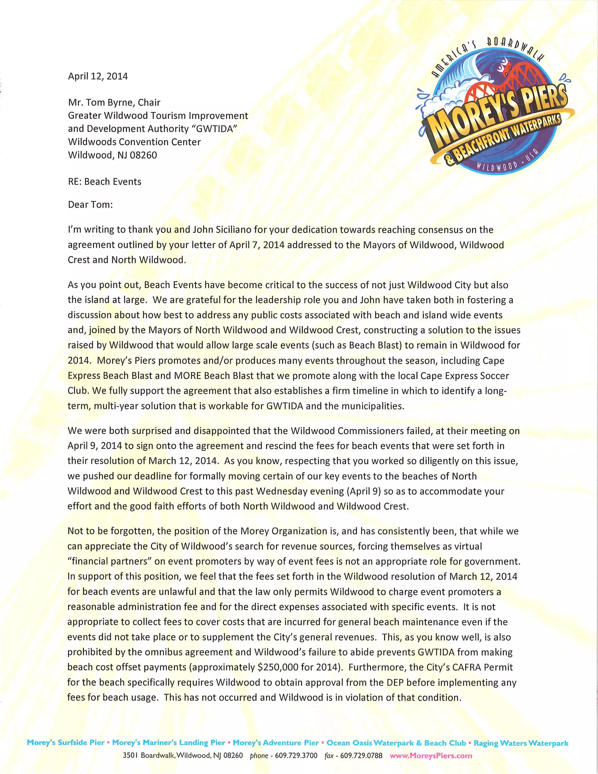 Will Morey writes that if Wildwood doesn't rescind its beach events fees, three of the largest events Morey's Piers promotes will move to Wildwood Crest and North WIldwood in 2014.