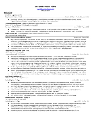 William Reynolds Harris has over 15 years of experience as a legal researcher, paralegal, and assistant. He has worked for various law firms, Emory University, and private companies researching a wide range of legal issues including civil procedure, criminal law, IP, real estate, litigation, and business law. Harris has strong research, writing, analytical, and technical skills. He is pursuing an LLM from Emory Law but is currently working as a freelance paralegal.