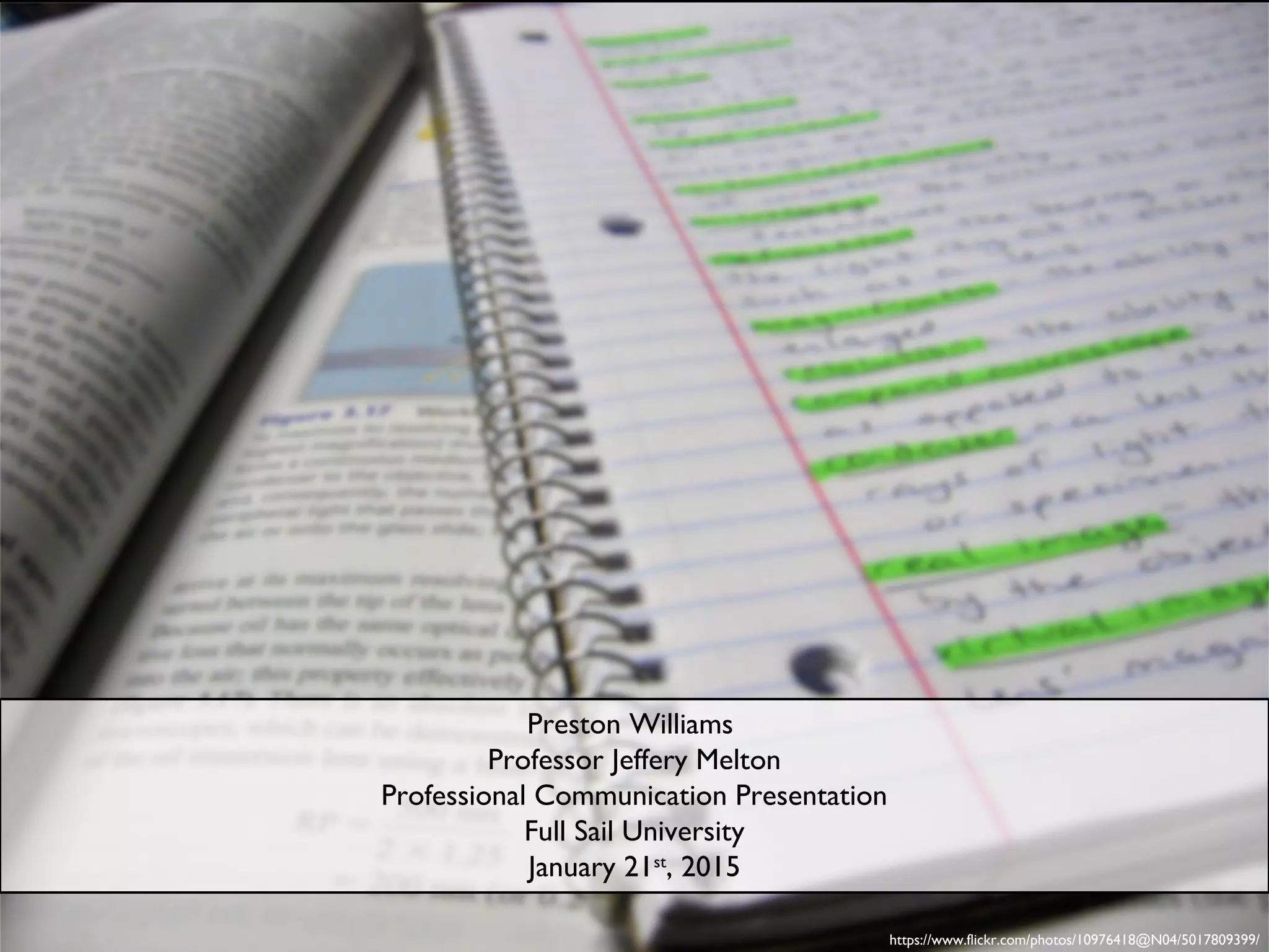 This document appears to be a presentation about Preston Williams' image and goals for social media growth. It includes multiple links to Flickr photos and discusses Williams working hard to build his image and social media pages. The presentation encourages going global with Internet marketing as the key to accomplishing growth goals.