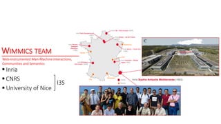 The document discusses the web of data and the semantic web, focusing on the interlinking of data and schemas across global resources. It highlights the importance of typed graphs in analyzing and formalizing social semantic web applications for epistemic communities, while addressing various research challenges. Additionally, it explores frameworks for improving user interaction, analyzing communities, and managing collective activities on social media.