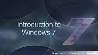 The document discusses Windows 7 and its development. It focuses on delivering improved performance, reliability and compatibility based on feedback from Windows Vista users. New features are positioned as making existing tasks easier rather than major architectural changes. Testing and pilot programs are intended to improve deployment and ensure hardware and software compatibility.