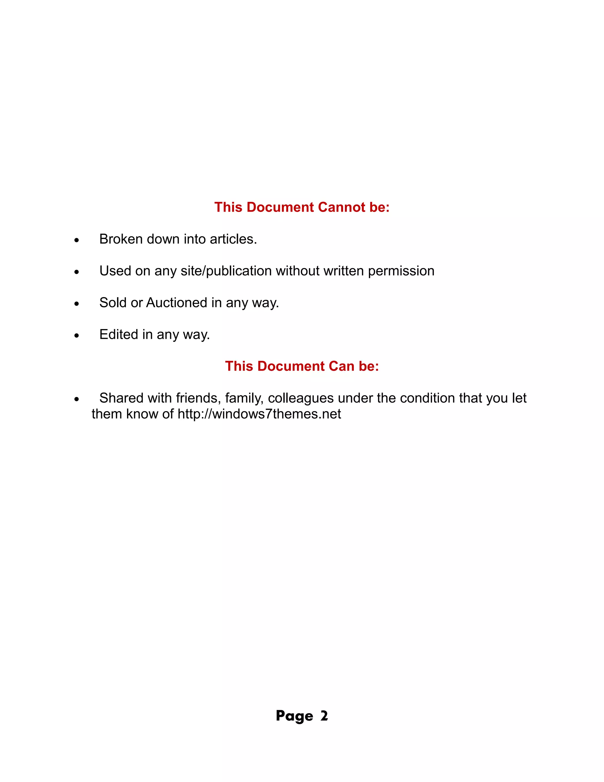 This document provides a summary of guides for optimizing and customizing Windows 7. It includes sections on disabling features like hibernation and indexing to improve performance, as well as enabling features like DreamScene wallpapers. Individual guides show how to monitor CPU temperature, speed up boot time and shutdown, and create a toolbar for quick application access. The document is authored by Oliver "SK" Steinmetz and aims to help Windows 7 users get the most from their system.