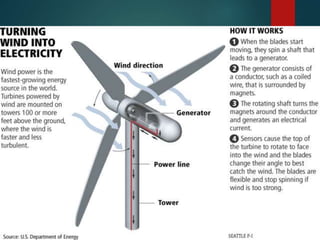 This document provides an overview of wind power plants. It discusses the typical parts of a wind turbine, including the rotor, transmission system, generator, and yaw and control systems. The document also outlines the advantages of wind power in being a renewable and pollution-free source of energy. However, it notes disadvantages such as the irregular and variable nature of wind and higher capital costs. Additionally, the document reviews the present scenario of wind power in India, which has the fifth largest installed capacity in the world, and is led by states like Tamil Nadu, Gujarat, and Maharashtra.