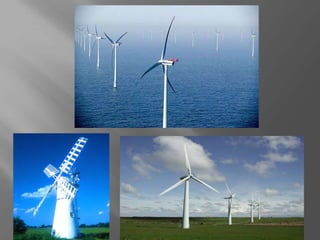 Wind energy has a long history dating back thousands of years. Modern utility-scale wind turbines are much larger than early designs and can power hundreds of homes. While wind is a renewable resource, it fluctuates and is not a constant power source. Wind farms are best used alongside other renewable energy sources. Technological advances continue to be made to optimize wind energy production and integrate it into energy systems.