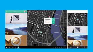 Il documento presenta eventi per sviluppatori organizzati dalla community dotdotnet in Emilia-Romagna, che spaziano da Piacenza a Riccione. Viene menzionato un focus sull'introduzione al design responsivo per Windows 10, con risorse utili collegate. Infine, si sottolinea la presenza di una sessione finale per domande.