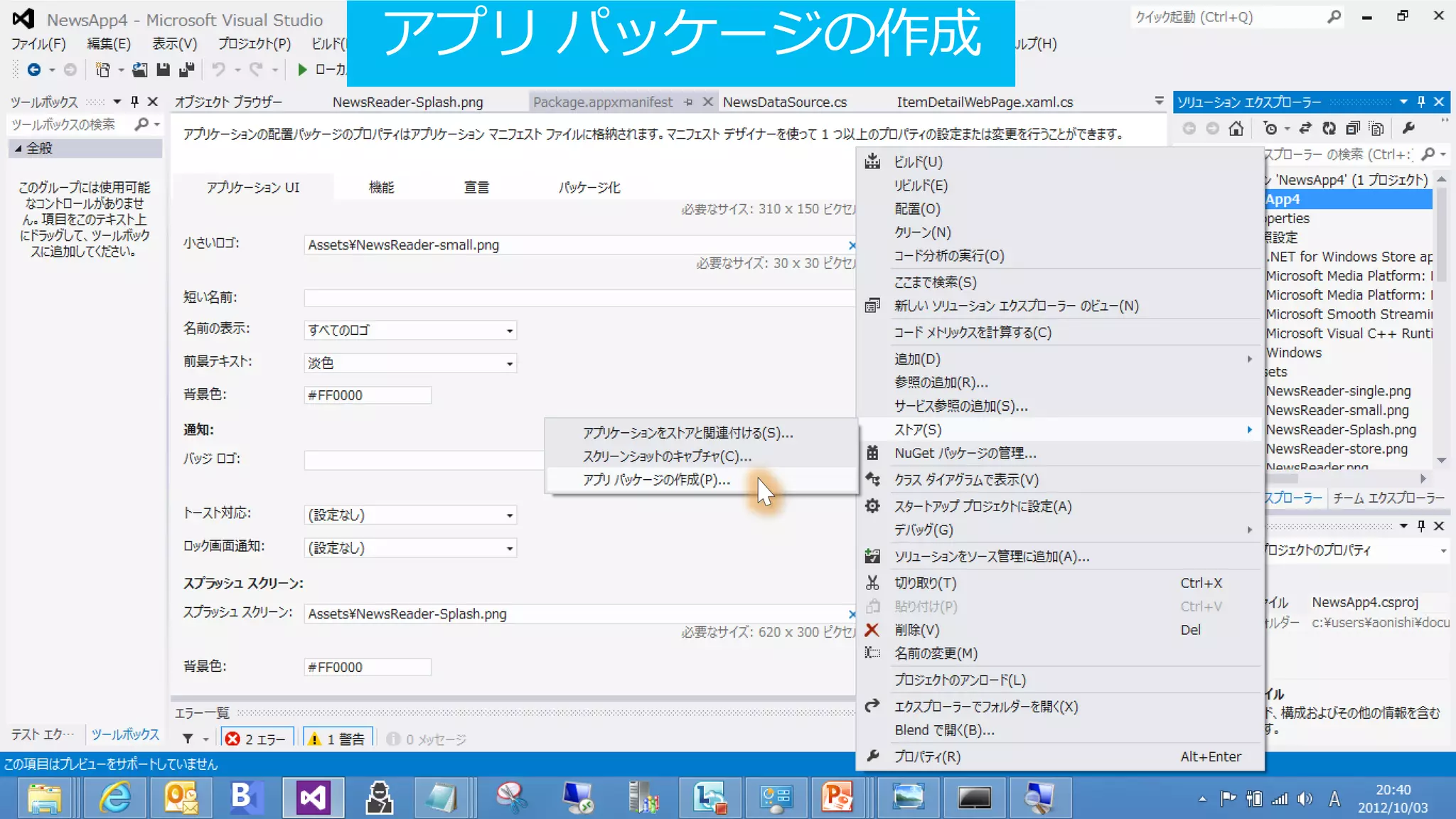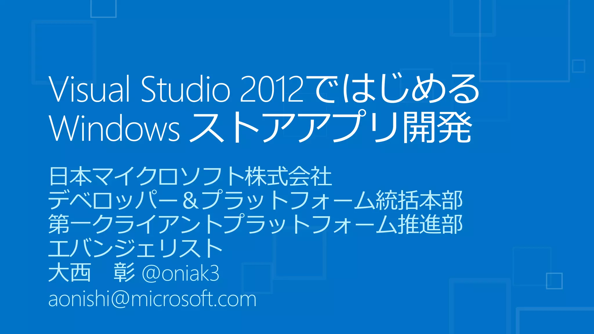 Developr Camp 2012 Japan Fall Day2 Special Session - Visual Studio 2012 で始める ...