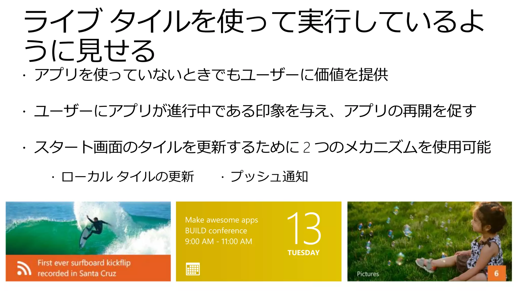 ライブタイル、通知、プッシュ