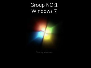 This document provides information about Windows 7, including its history, interface features like the desktop, taskbar, start menu and notification area. It describes what's new in Windows 7 like taskbar improvements, jump lists and 64-bit processor support. It covers functions like Windows Snap, Windows Explorer, Devices and Printers and Help and Support. It also includes sections on troubleshooting, shutting down Windows 7, its different editions and a comparison with Mac OS. Statistics are presented on usage share of different operating systems and reasons given to switch to Windows 7.