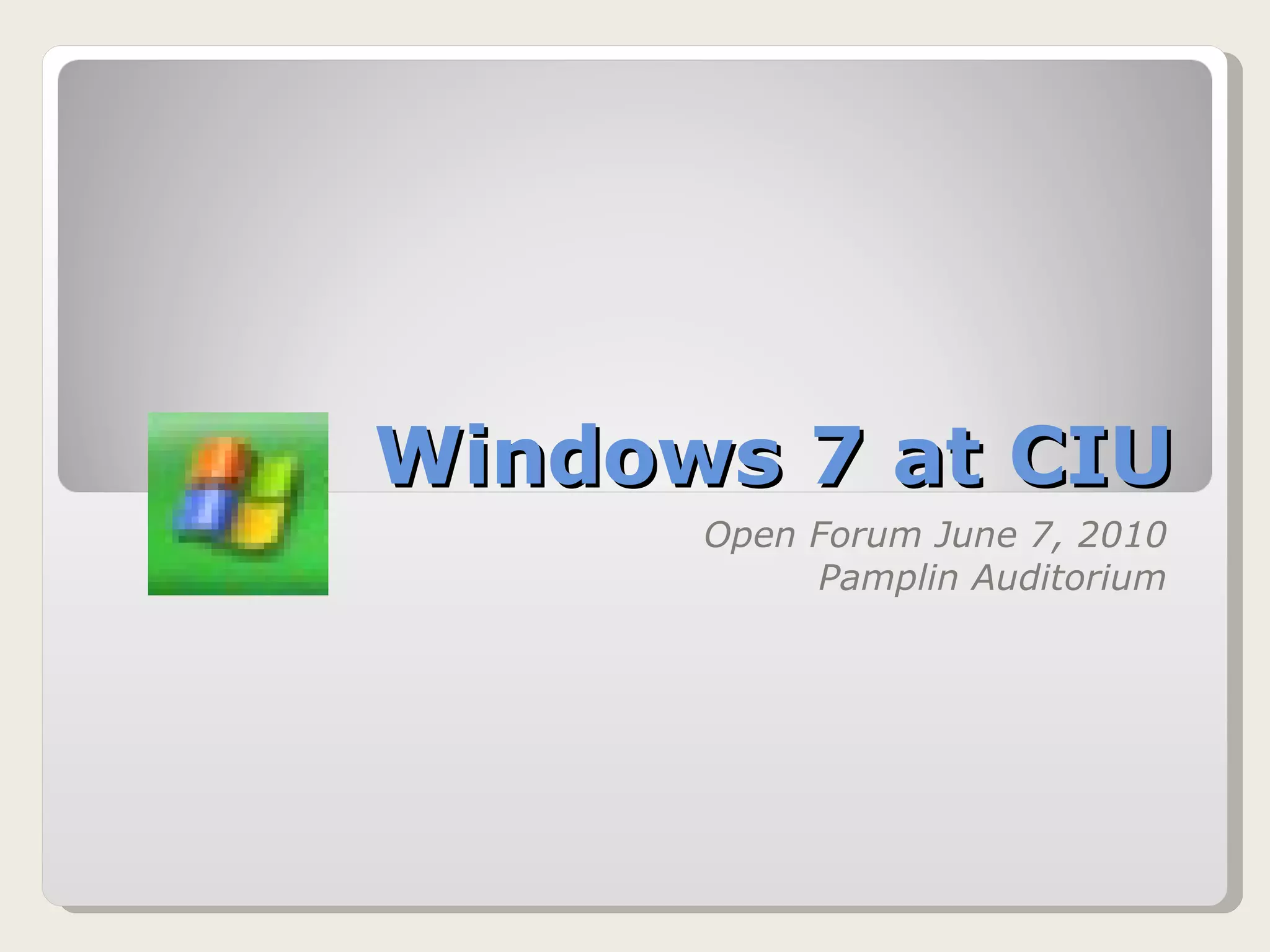 Windows 7 is Microsoft's newest operating system, designed to simplify tasks and make new things possible without hassle. It has improvements in power consumption, security, and stability over previous versions. The university plans to upgrade campus computers to Windows 7 over 2-3 years, starting with computer labs and IT services and later moving to classrooms, staff, library, and remaining faculty. There may be initial complications around software compatibility, learning curves, and printer/device drivers.