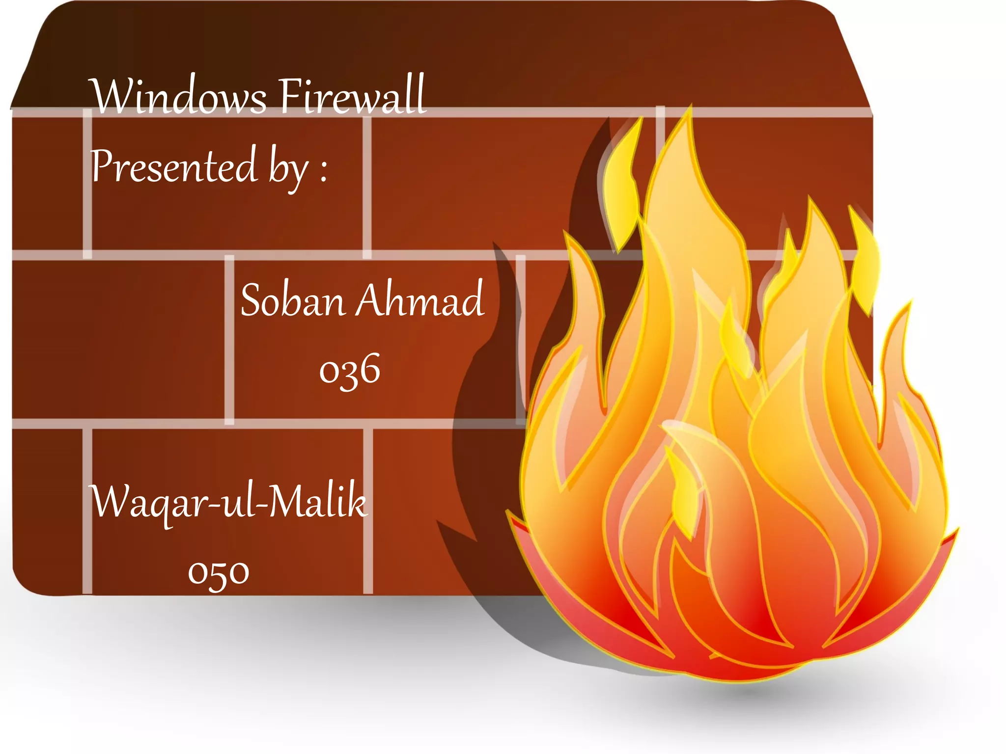 The document discusses Windows Firewall, explaining its purpose, types, and functionalities, emphasizing its role in preventing unauthorized access to computers through networks. It details the features of Windows 7 Firewall, including different profiles for various network locations (public, private, and domain) and the configuration options available for managing firewall rules and connections. Additionally, it covers the technical workings of the firewall, such as how it filters traffic and logs entries based on defined rules.