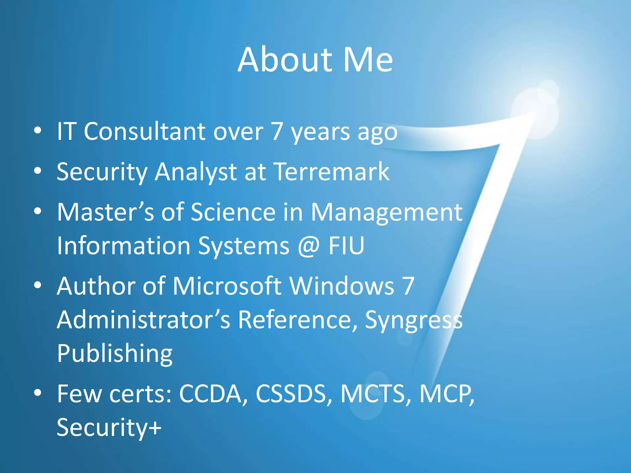 The document discusses Windows 7 security features such as Action Center, improved User Account Control, BitLocker, BitLocker To Go, biometric security, and Internet Explorer 8. It notes Windows 7 is an incremental update to Vista that uses the same security technologies but with a simpler interface and performance enhancements. The document emphasizes the importance of securing Windows 7 systems, educating users, using features like BitLocker, patching, and antivirus as threats continue to evolve beyond any single platform.