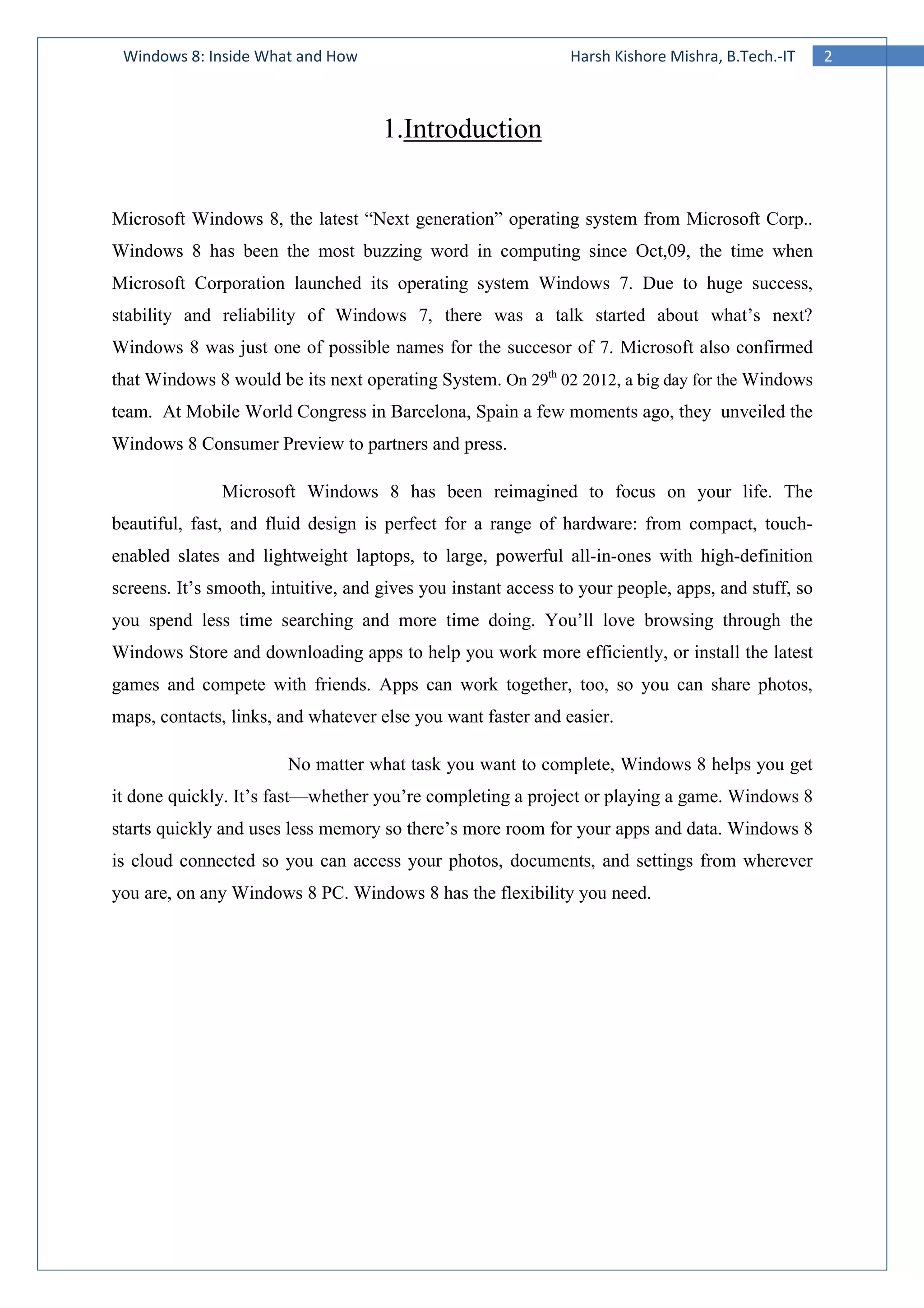The document discusses the unveiling of Microsoft Windows 8 Consumer Preview at the Mobile World Congress in February 2012, highlighting its reimagined, user-friendly design aimed at various hardware types. Windows 8 introduces features such as enhanced cloud connectivity, improved performance, and a new app ecosystem, making it suitable for both leisure and productivity. The history of Windows operating systems leading up to Windows 8 is also outlined, emphasizing the evolution of functionality and user experience since its initial release in 1985.