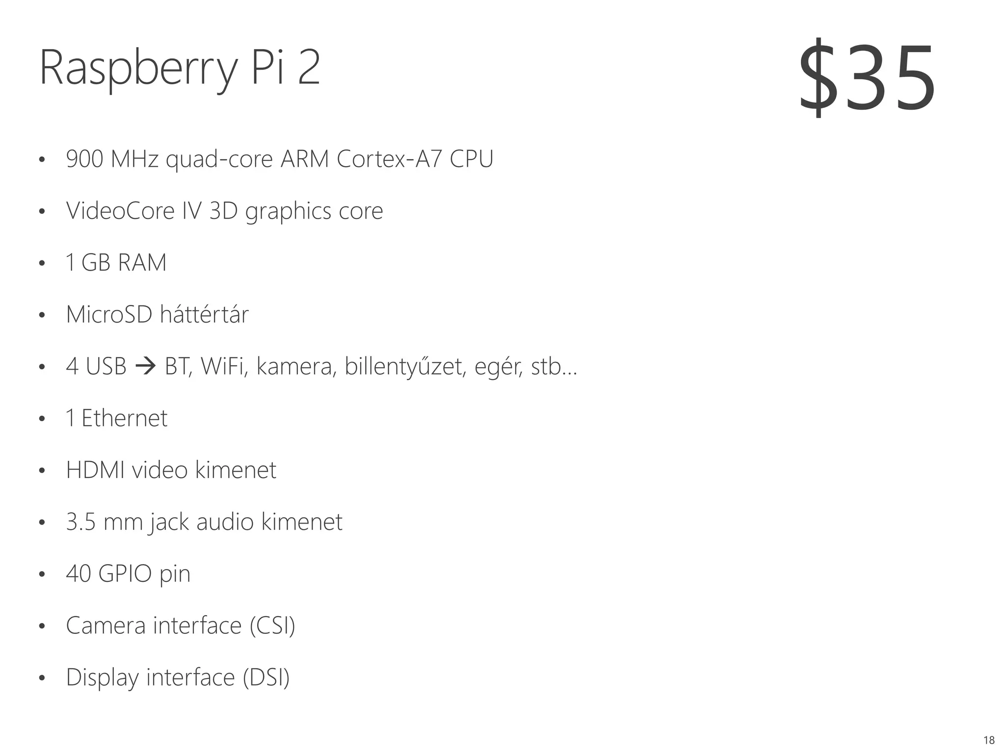 A Windows 10 megjelenésével a Microsoft operációs rendszere immár egészen kicsi méretű hardver eszközökön, például Raspberry Pi 2-n is elérhetővé vált. Mivel az itt futó Windows IoT Core pontosan ugyanaz a Windows, amit már asztali vagy mobil környezetben megszokhattunk, a korábban megszerzett fejlesztői tudásunkat felhasználva pillanatok alatt „maker”-ként léphetünk be az Internet of Things (IoT) világába. Az előadásban röviden áttekintjük a Microsoft IoT stratégiáját, majd megnézzük, hogyan fut a Windows egy bankkártya méretű PC-n, és hogyan tudjuk azt konfigurálni. Részletesebben lesz szó a fejlesztői lehetőségekről, konkrét példákon keresztül kaphatunk képet a szenzorok programozásáról és az IoT debuggolásról Visual Studio segítségével.