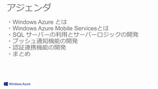 Windows Azure Mobile Services を使った Android/iOS アプリケーションの構築 1. Windows Azure Mobile Services を使った