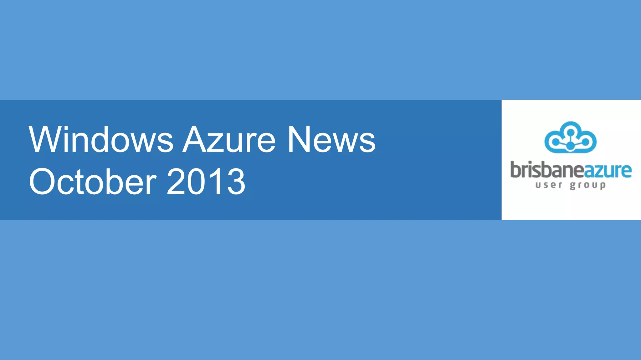 The document outlines various updates and news related to Windows Azure as of October 2013, including new features and improvements like multi-factor authentication and high-performance cache services. It also highlights events such as conferences and meetups focused on Azure technologies and community engagement. Additionally, it provides links to resources and articles for more information on Azure developments.