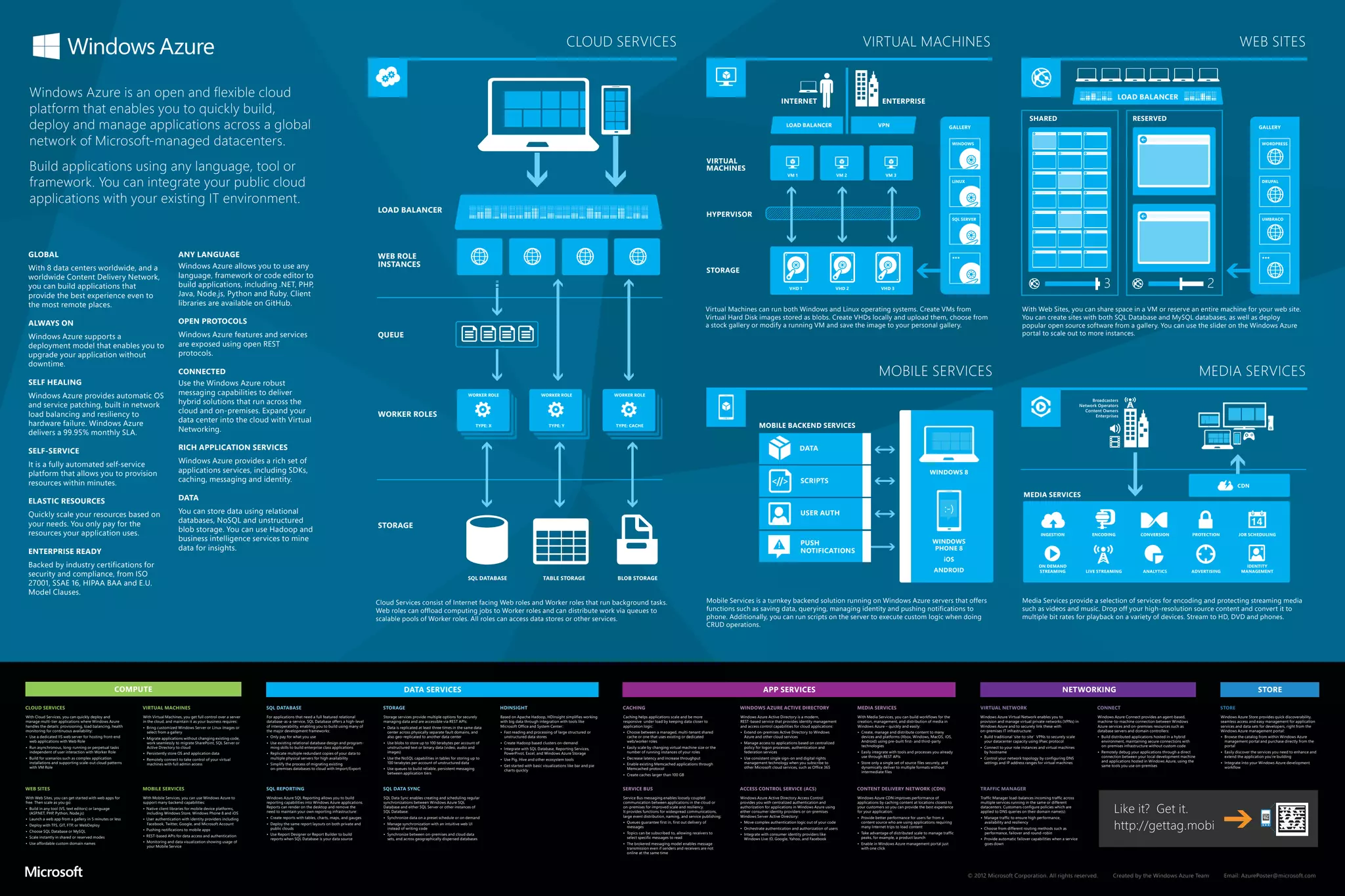 Windows Azure is a flexible cloud platform that supports the development and management of applications across various environments, utilizing a global network of Microsoft-managed data centers. It allows users to create and scale virtual machines, web applications, and databases using multiple programming languages and frameworks while providing robust security and networking features. Additionally, it offers integrated services for media, identity management, and analytics, facilitating seamless connectivity between cloud and on-premises resources.