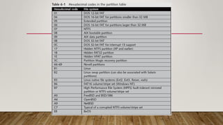 This document provides an overview of file systems and disk structures relevant to computer forensics investigations. It discusses key components of file allocation tables (FAT) and file systems like FAT12, FAT16 and FAT32. It also covers the New Technology File System (NTFS) used in Windows, including the master file table and how files are stored as either resident or non-resident attributes. The document also examines disk partitioning, the master boot record, and startup processes for Windows, MS-DOS, and other operating systems. Understanding these fundamental concepts is important when acquiring or analyzing data from a suspect's computer.